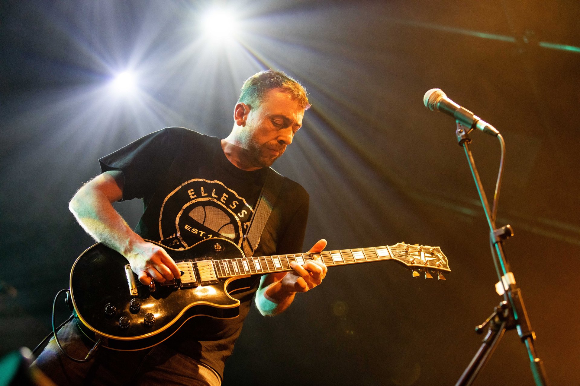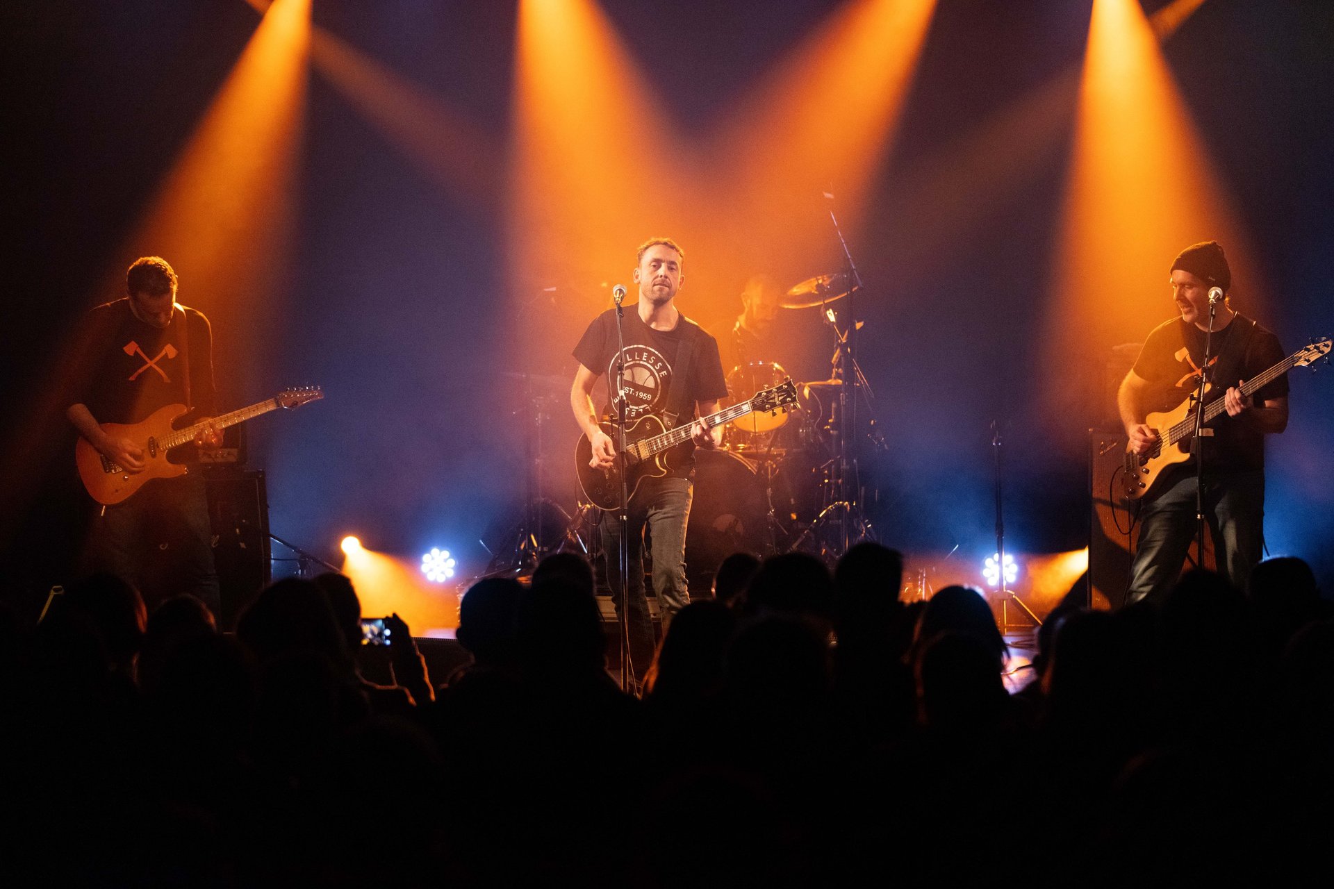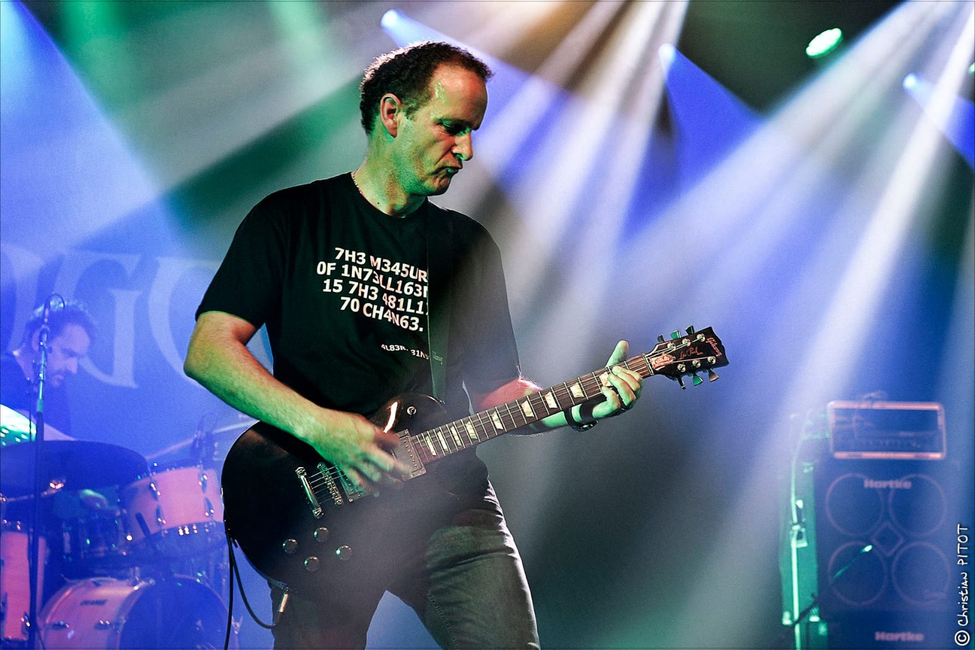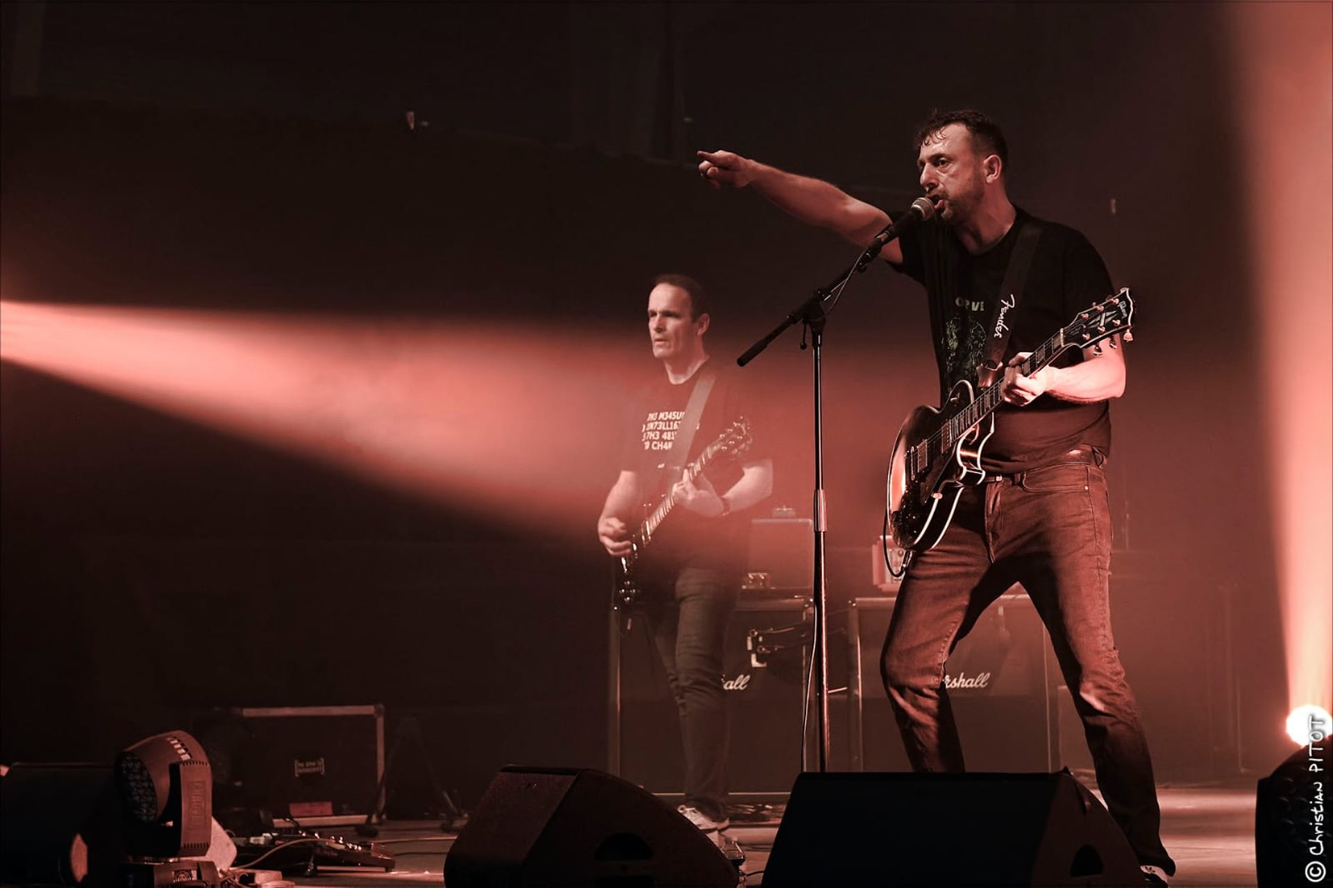 Avec Laurent à la basse et Bruno à la batterie, la coordination entre Tof et Nan's façonne le cœur musical du groupe. Leurs guitares se répondent en écho, se complétant de manière saisissante, que ce soit sur des passages agressifs ou des envolées plus aériennes. Tof, malgré sa présence plus réservée, parvient à captiver le public par son jeu précis et énergique, laissant chaque note résonner avec une puissance brute.