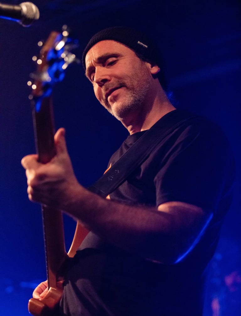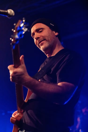 Dans chacune de ses performances, Laurent se distingue par son jeu de basse solide et sa présence scénique affirmée. Il sait créer des lignes de basse puissantes qui forment l'épine dorsale de chaque morceau du groupe. À travers son jeu, il ancre le son de The LOGGERS dans des rythmes profonds, apportant une stabilité et une cohésion indéniables.