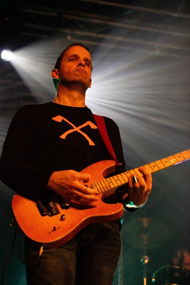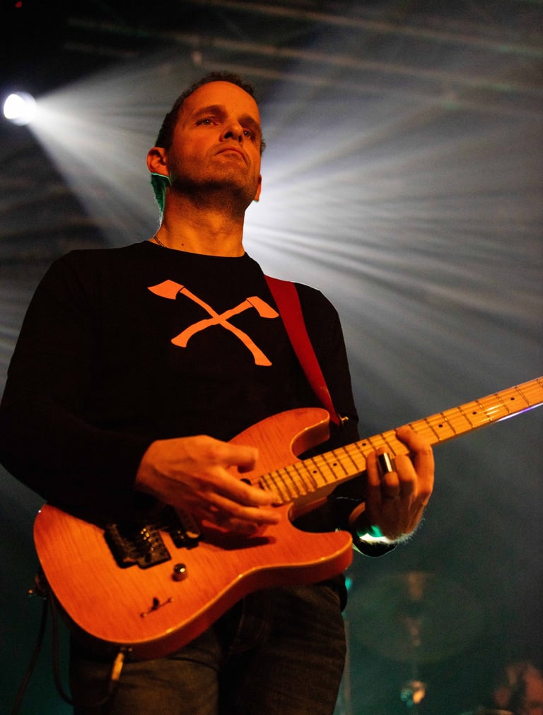 Christophe, surnommé Tof, est le guitariste lead de The LOGGERS, et son rôle dans le groupe est fondamental pour façonner leur son puissant et distinctif. Avant de rejoindre la formation en 2018, il a affiné son jeu dans diverses expériences musicales, développant un style alliant la force brute du stoner rock et des nuances mélodiques plus fines.