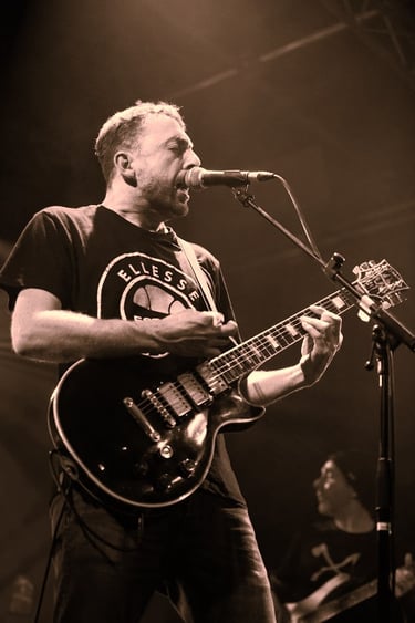 Sur scène, Tof et Nan's, au chant et à la guitare rythmique, forment un duo parfaitement coordonné. Leurs interactions musicales créent une dynamique explosive : tandis que Nan's assure des rythmiques robustes et accrocheuses, Tof se charge de tisser des solos éclatants et des riffs incisifs. Cette complémentarité renforce l’énergie du groupe, leur donnant une profondeur sonore qui résonne à travers chaque morceau.